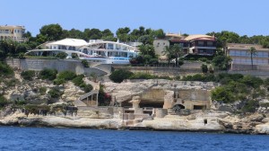 Wir wählen Santa Ponsa, da sind wir auf jeden Fall geschützt und legen ab. Vorbei geht es an den aufregendsten und ausgefallendsten Villen, die ich je gesehen hab,