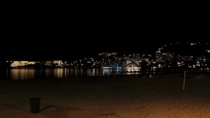 Im Dunklen mit Beiboot Beleuchtung suchen wir wieder unser Schiff und finden es auch sehr schnell und fahren zurück.