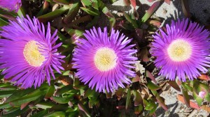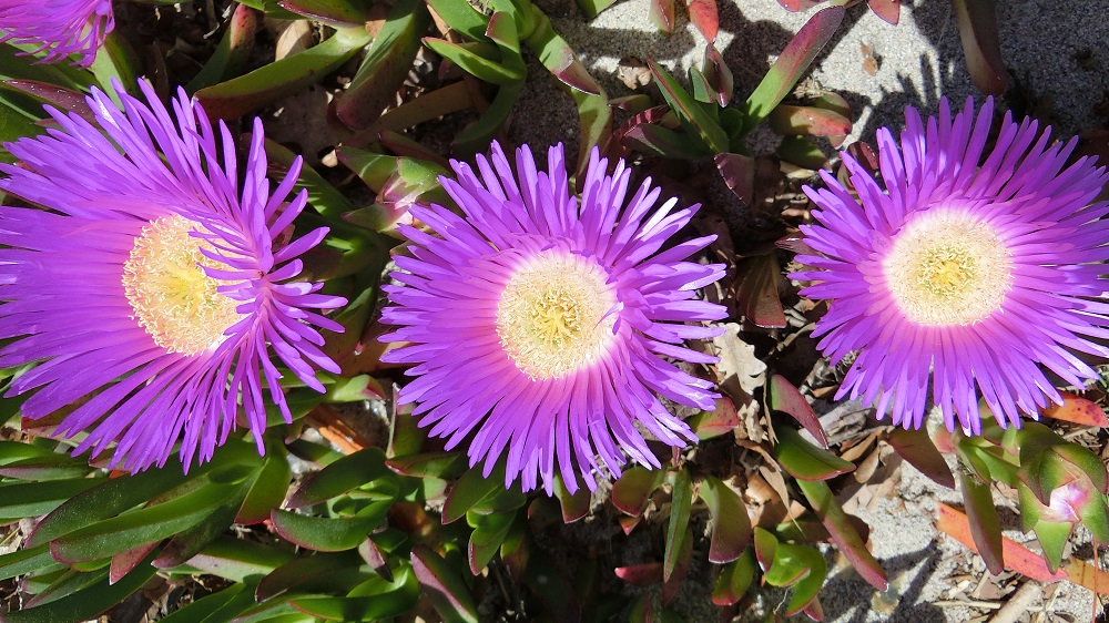 Alles blüht in den leuchtendsten Farben am ende vom Strand. Bewundernswert, wie die Pflanzen mit so wenig Wasser auskommen.