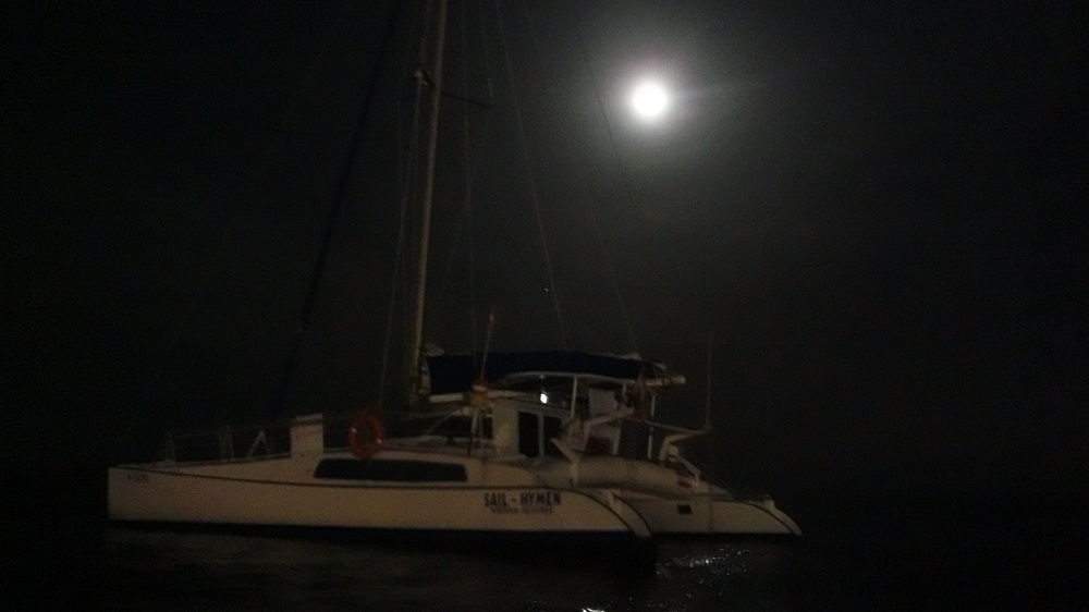 Die Wellen werden allerdings nicht weniger oder kleiner. Eine Lagoon liegt in der Zwischenzeit neben uns vor Anker.