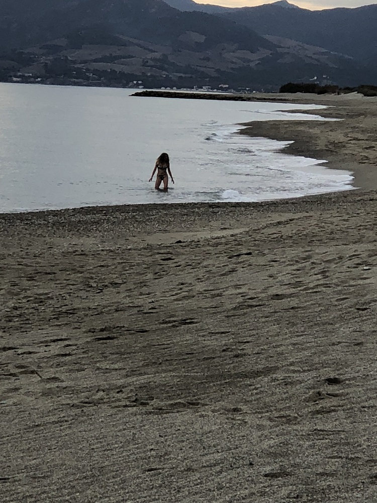 Ich glaube meinen Augen nicht zu trauen. vor mir zieht sich eine frau bis auf den Bikini und geht einfach ins Wasser und schwimmt. Außen Temperatur beträgt 12 Grad, das Meer kann nicht viel wärmer sein. Unglaublich!