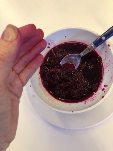 Am Weg zurück sammel ich mit Kurt´s dicken Arbeitshandschuhen rote Kaktusfeigen ein. Man muss sie abbürsten und von ihren kleinen Stacheln befreien. Mit Trick kommt man an das süßliche Fruchtfleisch mit den kleinen Kernen heran. Allerdings färben sie alles ringsum richtig Magenta, sogar die Finger. Und der eine oder andere Stachel steckt trotzdem im Finger! Aber sie sind sehr lecker.