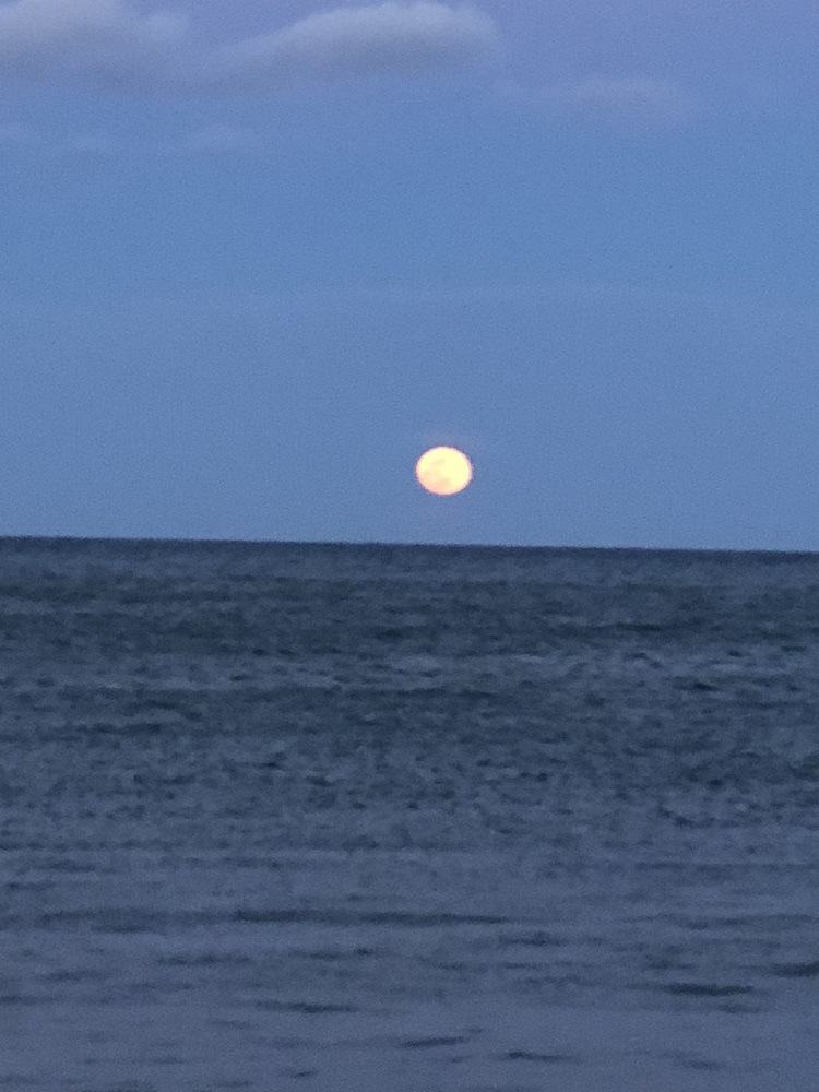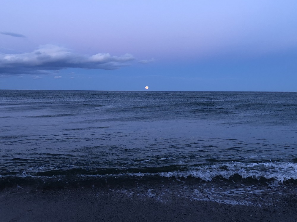 20.00 Wir gehen zum Strand, um den Mondaufgang über dem Meer zu sehen.