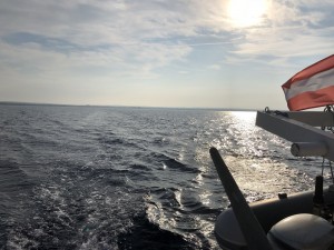 7.30 Wir sind schon auf und bereiten uns zur Überfahrt vor. Es sind schon einige Segelboote unterwegs, die den gleichen Weg haben oder nach Menorca fahren.