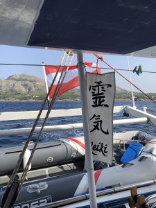 Es muss einer ins Wasser und die Anker trennen. Endlich springt einer der Männer der Segelyacht ins Meer und versucht die Flunke aus seiner Kette zu ziehen. Es dauert eine ganze Weile bis wir frei kommen. Unglaublich, wie das technisch möglich ist, wenn wir gestern noch so weit auseinander geankert haben.