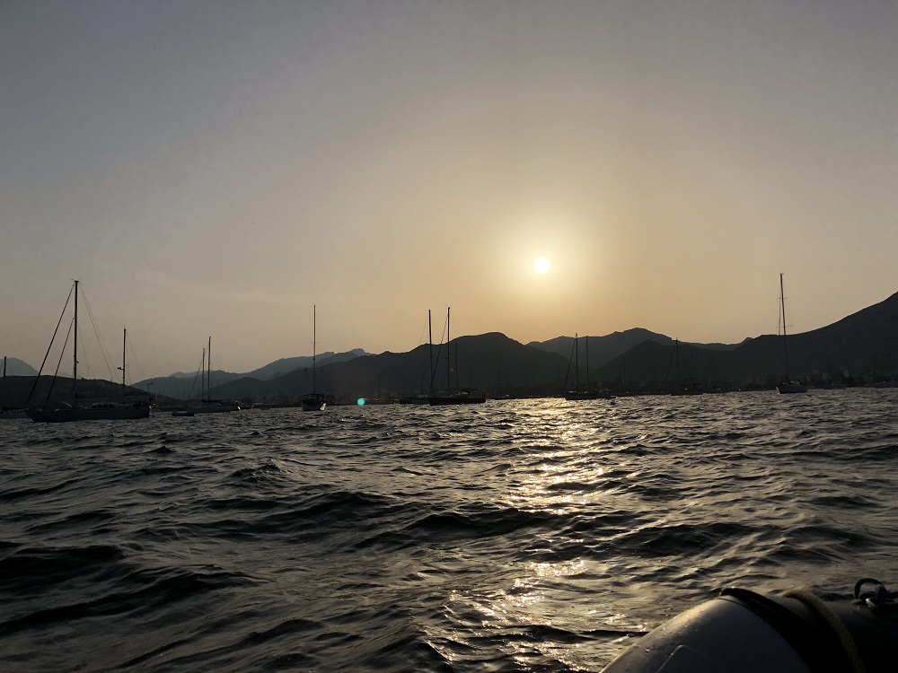 19.00 Landgang! Die Fahrt mit dem Tender wird ein wenig feucht, da Südost Wind in die Bucht hinein weht.