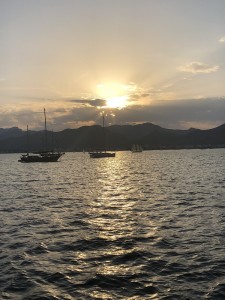 Wir müssen wieder zurück vor die Festung um einen guten Ankerplatz zu finden. Den Anker fahren wir kräftig ein im Sand, da Gewitter am Wetterbericht stehen.