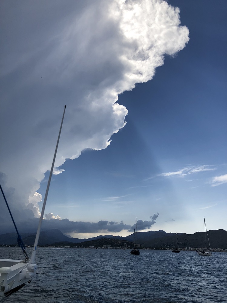 Wir bleiben heute in der Bucht vor Pollenca. sie haben schon wieder Gewitter angesagt.