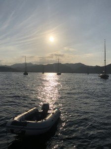 Wir genießen den windstillen und Wellen freien Abend, was ja sehr selten ist.