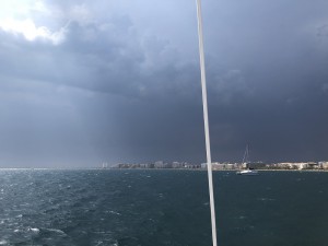 18.00 Es kamen nur ein paar Regentropfen. Das Gewitter hat sich aufgelöst. Wir fahren an Land. Ich freu mich!