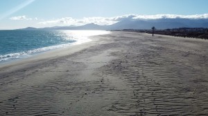9.00 Ich bin schon am Strand. Kurt schläft noch, da er nachts noch lange gearbeitet hat. es ist soooo schön warm und mild und ruhig hier am Strand.