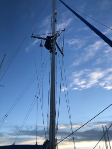15.00 Kurt klettert auf den Mast um das alte Radargerät abzumontieren.
