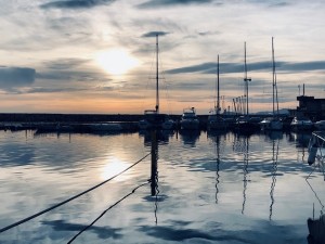 9.00 Ich bin fertig und bereit und laufe den Hafen entlang. Viele Menschen sind schon sportlich unterwegs. Das freut mich sehr.