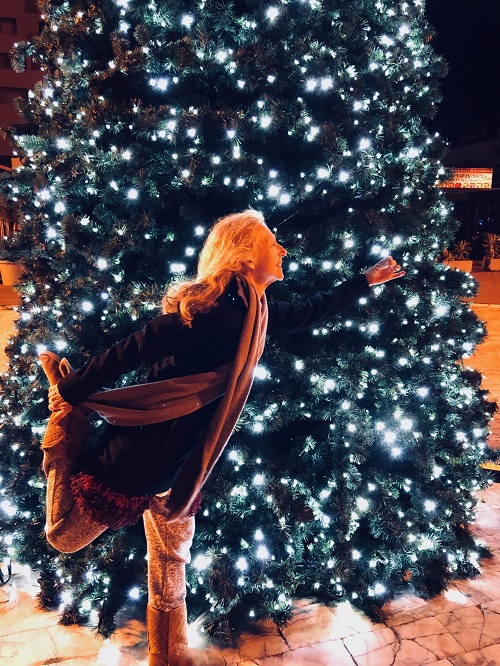 Schließlich gibt es noch ein bisschen Yoga vor dem Lichterbaum.
