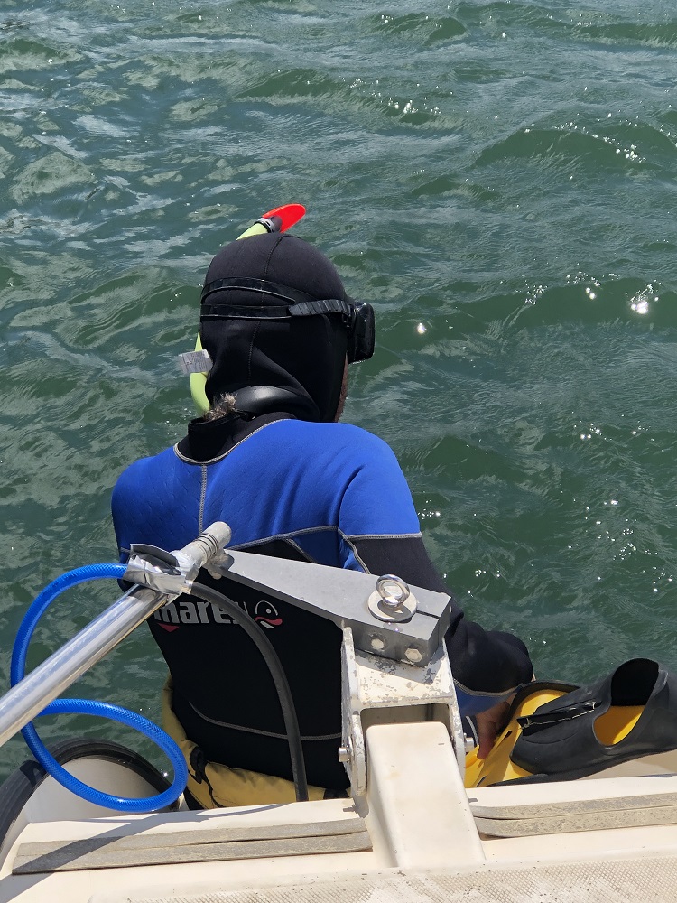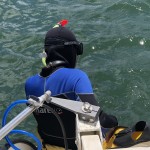 Heute darf Kurt zu den Propellern tauchen und sie frei kratzen, damit dann auf der Reise auch wirklich öffnen wenn wir anstarten. Er hat diese Tätigkeit aufgeschoben, solange es geht. Niemand taucht so gerne in diesem Hafenwasser.