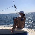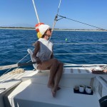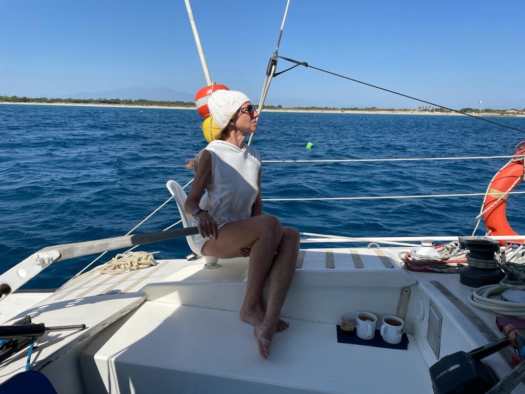 13.00 Der Wind ist fast aus, das Meer ist glatt, was glaubt ihr, kommt jetzt? Natürlich stoppen wir und Daniela und ich schwimmen eine Runde in 32 m Tiefe bei brrrrrrr 21 Grad. Zum Glück hab ich einen Neopren Badeanzug, denn es fühlt sich schon kalt an.