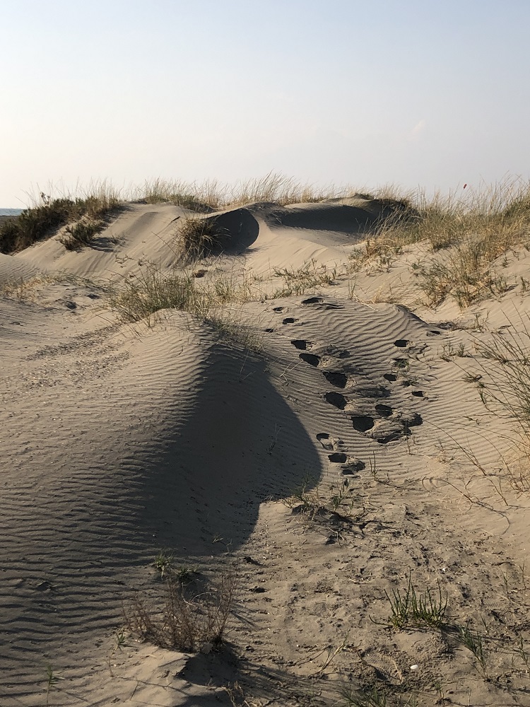 18.00 Wir erkunden den Strand. Hoffentlich saugen uns die Gelsen heute Nacht nicht leer, wir werden vorsorgen. Es ist ehemaliges Malaria Gebiet, bevor es trockengelegt wurde und zum Naturschutzgebiet erklärt wurde, mit den verschiedensten Tierarten.