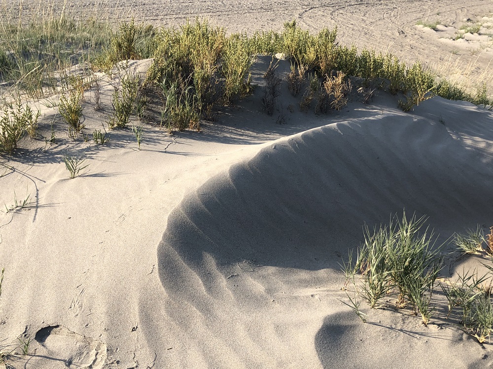 Es war überwältigend am Strand, endlose Weiten, wunderschöne Dünen, harter Sand, Kitesurfer und dahinter Wohnwägen, die in Strandnähe übernachten wollen.