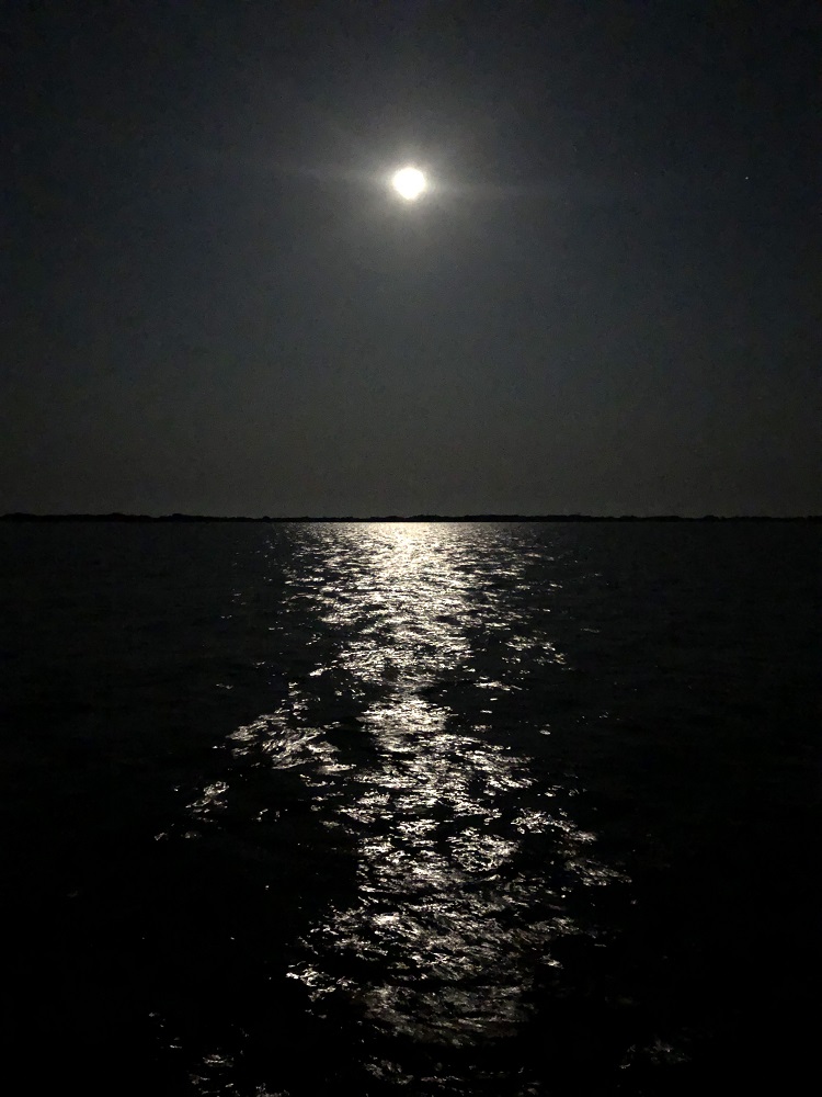 Nachts dann der wunderschöne fast Vollmond, davor noch ein Sonnenuntergang am Meer. Ich konnte mich kaum satt sehen und wollte mich nicht vom Mond Anblick trennen und war noch eine ganze Weile auf und bin an Deck gesessen und hab das Mondlicht bewundert.
