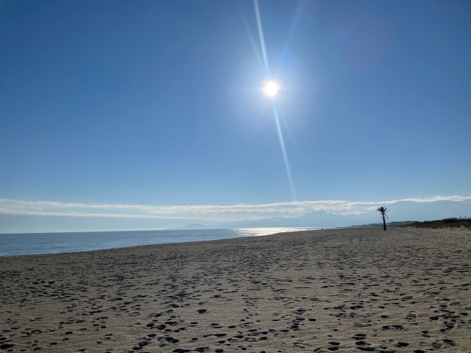 Nach dem Frühstück mach ich eine Strand Runde für ein paar blitzblaue Fotos und gleichzeitig wird wieder Plastik Müll eingesammelt. Wenn schon, denn schon.