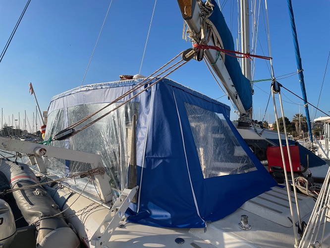 Was wir aber unbedingt heute weiter machen wollen, ist das Verdeck, der Wintergarten, damit ich Dienstag online Pilates machen kann. Abends hat es auch hier meist nur 8 Grad. Da kann ich nicht turnen.