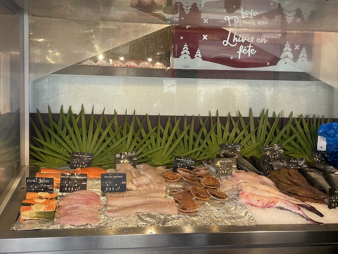 Mit dem Fahrrad fahr ich ins Hafenbüro. Am Rückweg husch ich noch zum Supermarkt. Die Franzosen lieben Fisch, Meeresfrüchte, Muscheln in allen Variationen und so steht immer vor Weihnachten und Silvester ein kleiner Fischmarkt vor dem Supermarkt.