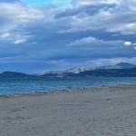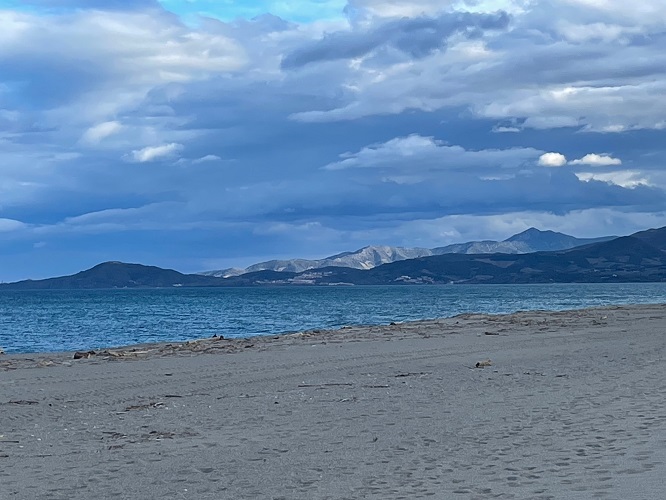 18.00 Die Sonne scheint noch in den Bergen. Ich geh zum Strand. Umwerfend sieht es aus, wenn ein Teil der Berge noch in der Sonne ist.