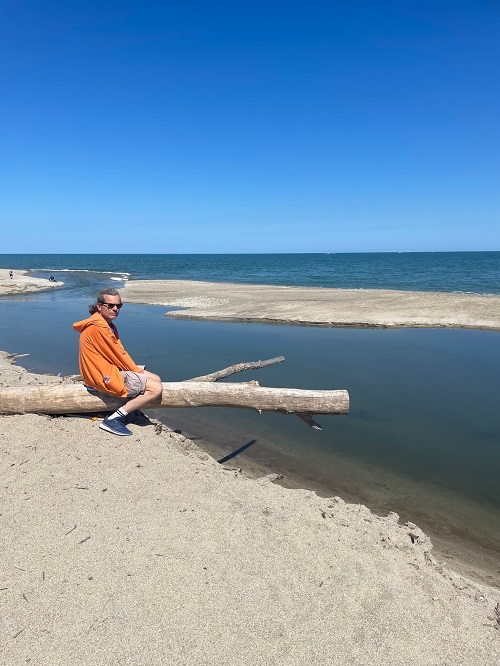 14.00 Wir radeln zur Flussmündung, eine wunderschöne Stelle, die 2 Ufer trennt. und jedes Mal macht sich der Fluss eine andere Mündung!