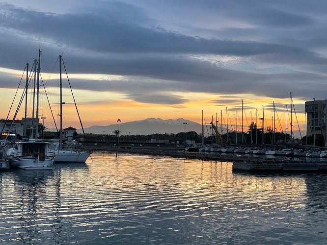 21.30 Der Wind hat aufgehört. Wir gehen unsere Verdauungsrunde und es sind immer über 5 km bis zum Hafen.