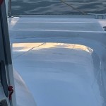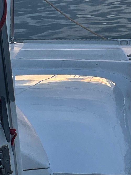 Kurt beginnt das vor den Regengüssen aufgetragene Gelcoat zu schleifen. Das werden viele Gänge, immer feineres Schleifpapier und am Schluss polieren. Aber es ist eher eine Spielerei als ein Vorankommen, da es so viele kleine Stellen sind.