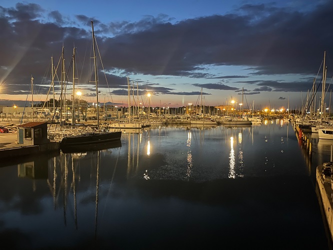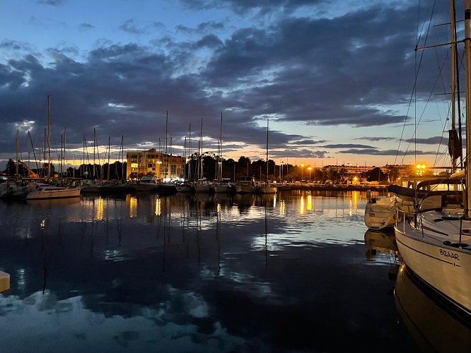 Nach dem Nachtmahl gehen wir wieder eine kleine Runde. Der Wind hat aufgehört und es ist angenehm mild mit 19 Grad. Viele wunderschöne Spiegelungen sehe ich und halte sie auf meinem Handy fest.