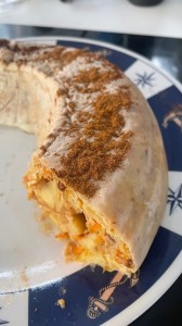 Ich hab noch Strudelteig aus Wien und versuche im Omnia Ofen einen Strudel zu backen mit allen möglichen Zutaten die es eben noch gibt im Schiff.