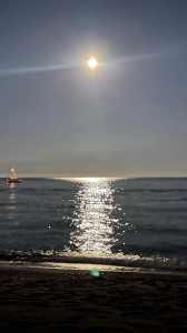 Es ist Vollmond, da muss man einfach am Strand stehen und den Lichtstrahl am Foto festhalten. So schön ist er heute und leuchtet.