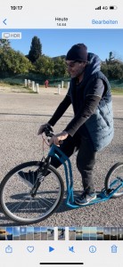 Nach dem Essen ist Scooter Training dran. Es geht schon viel besser wie gestern. Da waren wir noch ein wenig wackelig unterwegs.