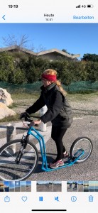 Es klappt wunderbar. Nachdem mein Roller noch nicht da ist, wechseln wir ständig zwischen Roller und Fahrrad. Es macht richtig viel Spaß. Ich freu mich schon auf meinen Scooter, der angeblich nächste Woche geliefert wird.