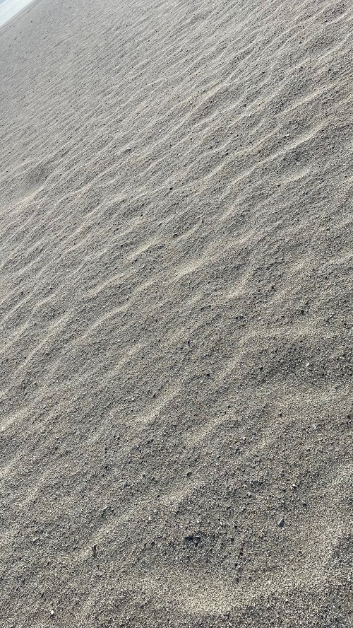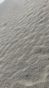 Der starke Wind hat sämtliche Spuren im Sand verweht, sowohl von Mensch, als auch von den tieren. Es sind nur die Wind Wellen zu sehen. Sieht toll aus. Ich hinterlasse jetzt neue Spuren. Es ist wie ein Neubeginn.