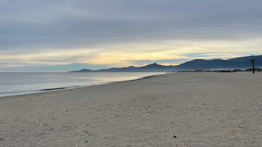 Während Kurt sich ankleidet, husche ich nochmal zum Strand. Es ist völlig windstill, kein Blatt bewegt sich.