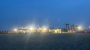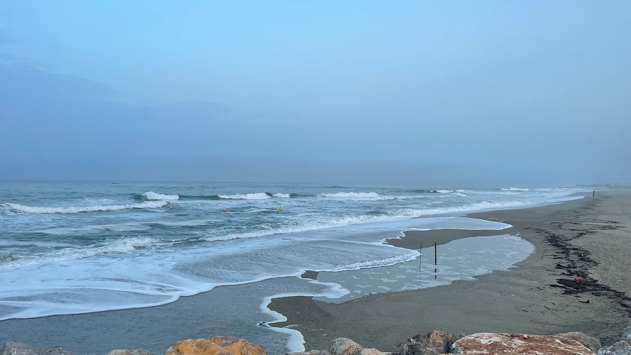 Dünung ist immer noch laut zu hören. Der Strand ist etwas überschwemmt, aber es läßt schon nach.