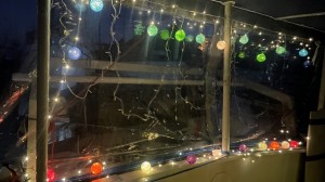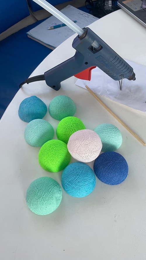 Im Sommer hab ich in LaCiota 20 bunte Lampions gekauft. Jetzt werden sie in eine Lichterkette gestopft und mit Heißklebepistole verschlossen.