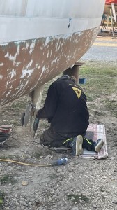 Kurt geht schleifen. Zum Glück gibt es nicht mehr Flächen, die er noch nicht versorgt hat. Vielleicht kommt ja morgen auch unsere Kit Lieferung hier an.