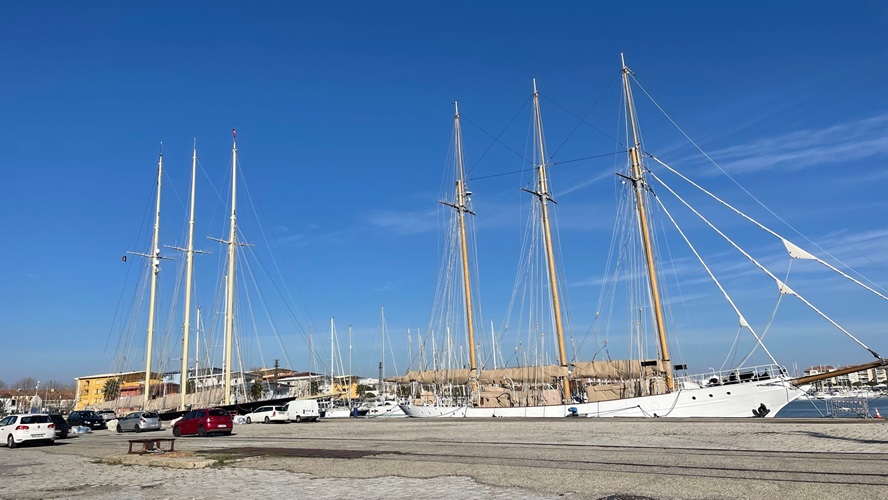 Mit dem Bike geht es in den Ort, Port St. Louis, an den wunderschönen 3-Mastern vorbei. Es ist nicht weit, ca 3 km.