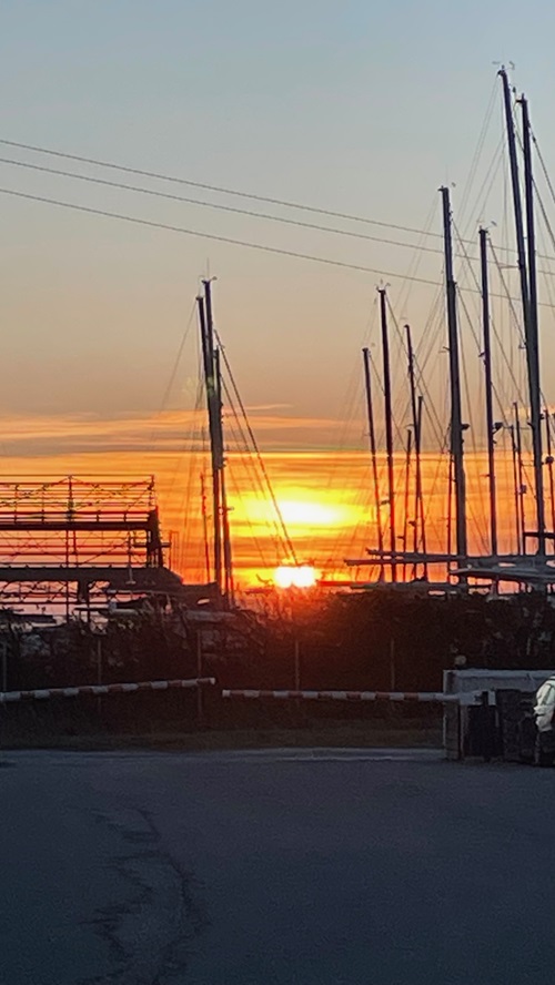 Natürlich dürfen auch heute meine Hausmeister Arbeiten nicht ausbleiben. Ich bin gerade am Weg zur Entleer Stelle, als ich den roten Himmel entdecke. sofort zurück laufen zum Schiff und das Handy für euch holen.