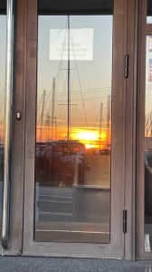 Die Sonne spiegelt sich sogar in der Türe des Restaurants.