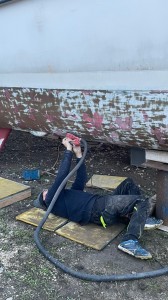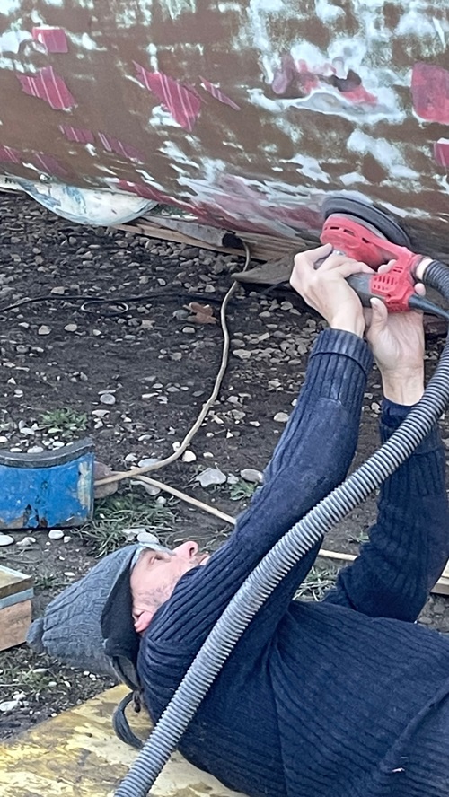 Ich bin gespannt und hoffe es für ihn. Dann wird gepinselt. Bin schon sehr gespannt, wie sich die Farbei verhält und ob sie bei Kälte härtet. Alles noch sehr spannend.