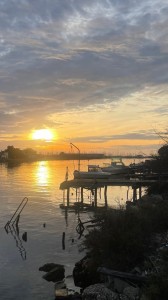 Er fährt den Kanal bis gegenüber unserer Marina und wir versuchen mit dem Roller mitzuhalten. Uff! Das waren mindestens 15km/h und sehr anstrengend.