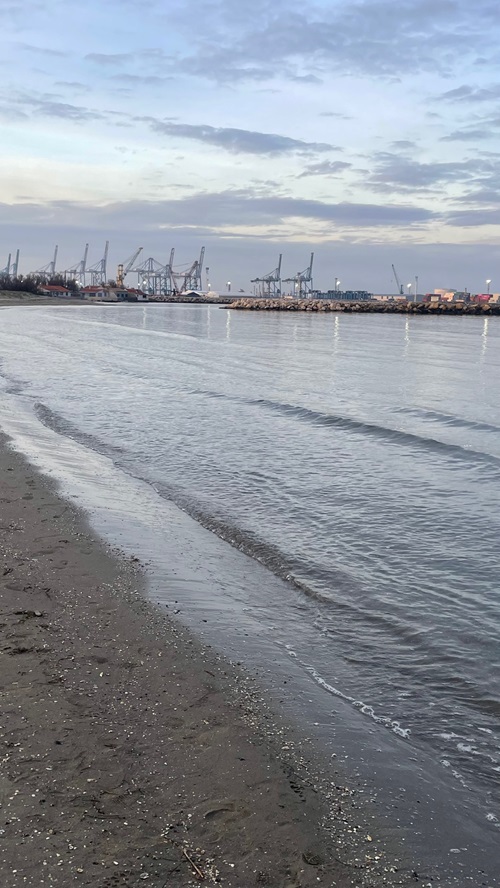 Ein Badestrand der Franzosen, ganz in der Nähe mit Blick zur Stahlfabrik. Ganz arg! Und rundherum viele kleine neue Häuschen.