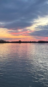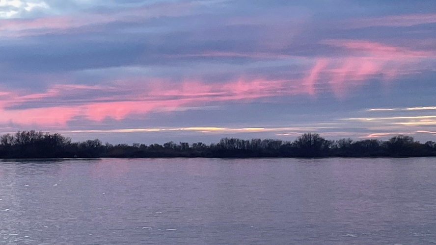 Wir halten kurz auf der Heimreise an der Rhone, da sich der Himmel wieder gigantisch rot färbt.