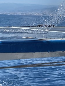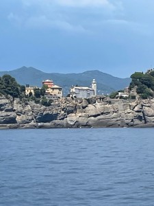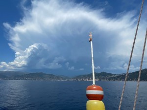 Heute müssen wir die große Bucht von Genua queren und über dem Land bilden sich schon wieder Gewitter. Ich hoffe, das hört bald auf.