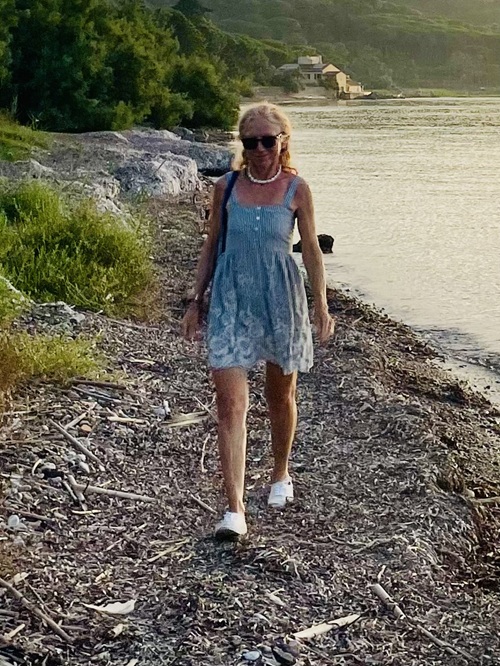 Über den Strand geht es wieder zurück zum Beiboot. Der Strand ist voll mit hartem Seegras, auf dem man gehen kann und es dient auch dem Schutz der Küste und wird nicht entfernt.