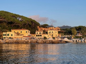 Idealerweise sollten wir bis Porto Ferraio, auch wenn heute noch Südwind weht. Aber je genauer wir dies betrachten, umso mehr stellen wir fest, dass wir nicht ums Kap kommen und dann über eine Stunde gegen den wehenden Südwind fahren wollen. Auf dieser Strecke hat er sicher schon große Wellen aufgebaut, wir benötigen viel mehr Diesel weil wir ja gegen den Wind fahren und Spaß macht dann das Gehüpfe über die Wellen auch nicht.